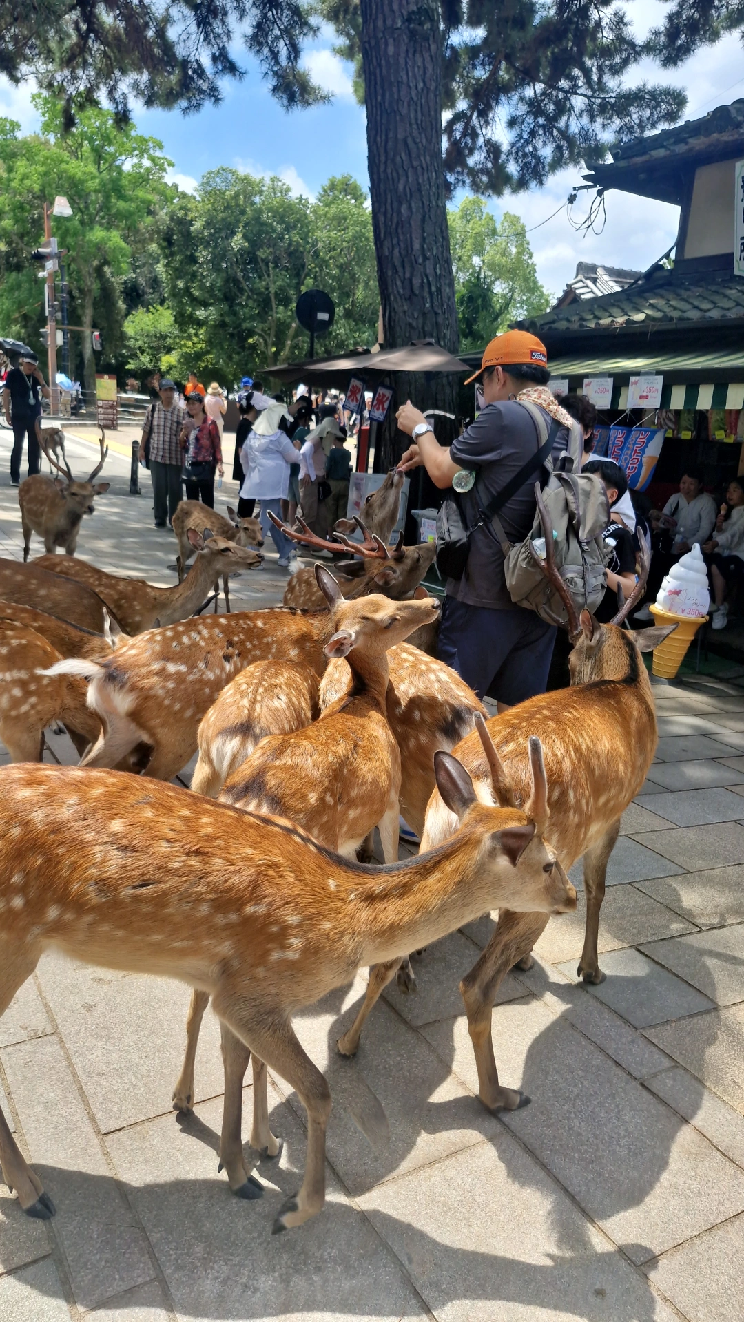 나라공원의 가장 큰 매력 중 하나는 바로 자유롭게 돌아다니는 ‘사슴’입니다. 약 1,000마리 이상의 사슴이 공원 전역을 누비며 관광객들과 교감하는데, 일본에서는 이 사슴들을 ‘신의 사자’로 여깁니다. 고대에는 가스가타이샤 신의 사자가 하늘에서 흰 사슴을 타고 내려왔다는 전설이 있으며, 이로 인해 나라의 사슴은 신성한 존재로 보호받게 되었습니다.