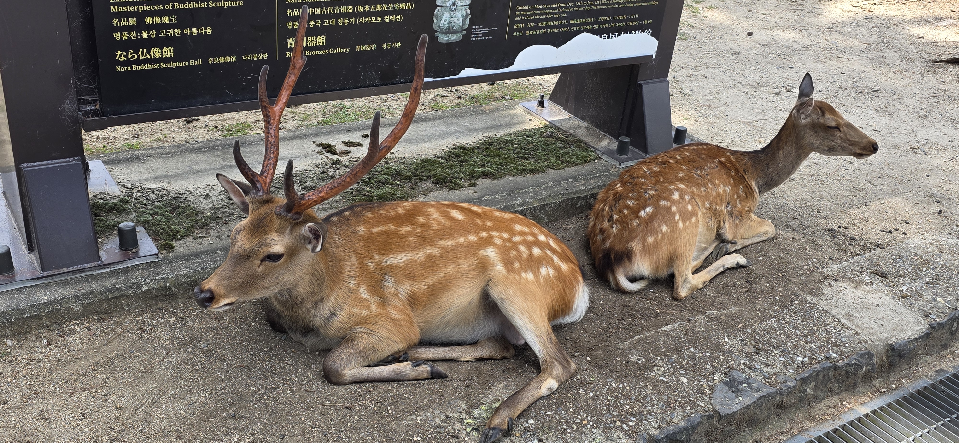 중간에 큰 산이 있는데 산을 타고 올라간 후 터널을 지나면 나라현으로 진입 후 나라역에서 내리게 되면 사슴의 나라인지 온통 사슴 모형이 있네요.